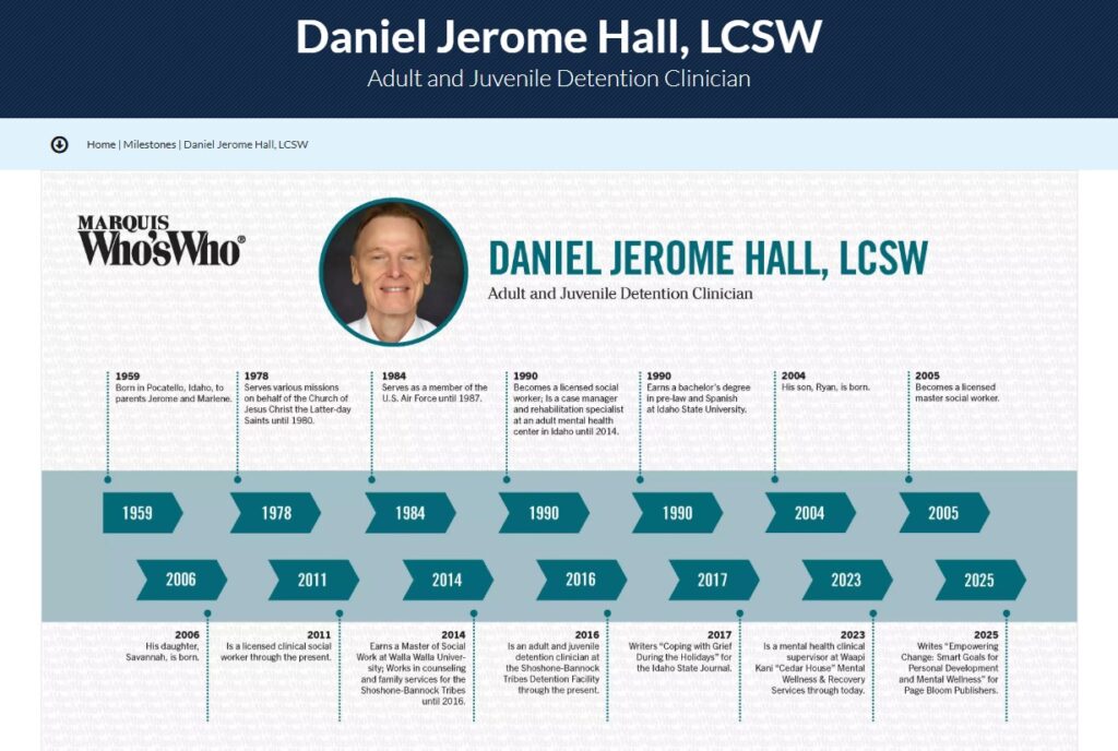 For the past five years, Daniel Jerome Hall has excelled in his position as an adult/juvenile detention clinician at Shoshone-Bannock Tribes Detention Facility in Fort Hall, Idaho. Amongst his numerous duties, he helps to provide trauma-informed care for the inmates and individual counseling and also develops program opportunities for the inmates, as well as handles crisis risk assessment and assists with psychiatric hospitalization. To prepare for his career in the detention environment, Mr. Hall gained vast experience working in counseling and family services for the Shoshone-Bannock Tribes from 2014 to 2016 and as a case manager and rehabilitation specialist at an adult mental health center from 1990 to 2014.